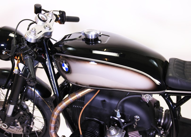 Il design è ispirato alla vecchia serie BMW R90S, infine le ruote , alle quali abbiamo sostituito i raggi con nuovi in acciaio inossidabile mentre i mozzi sono stati sabbiati e poi nebulizzati con uno strato di vernice trasparente.