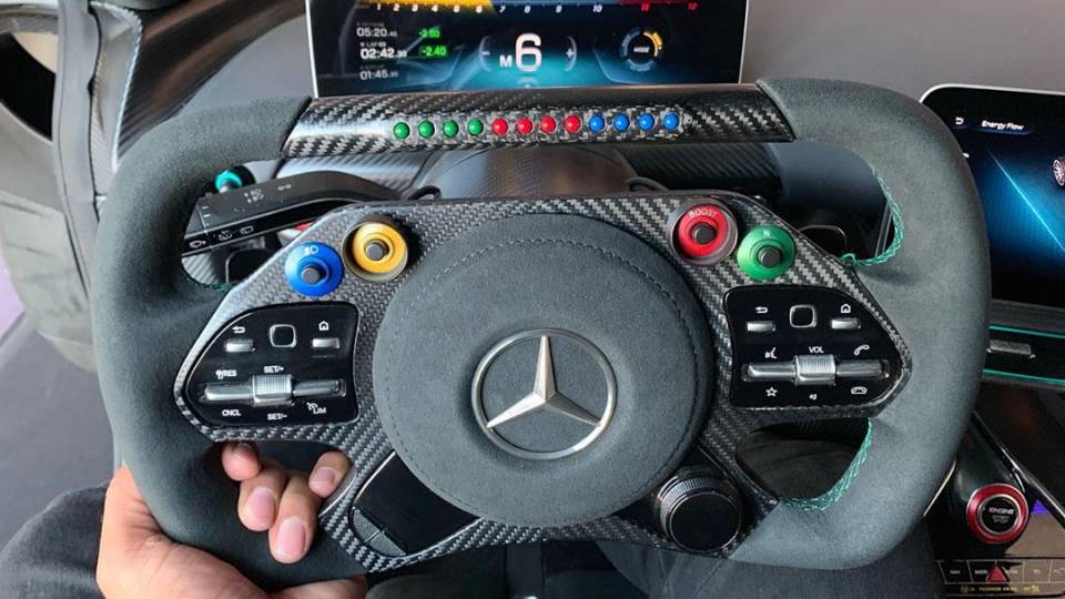 La nuova hypercar eccezionale Mercedes AMG-One utilizza lo stesso sistema MGU-H che viene usato nella massima competizione, quello che sfrutta i condotti di aspirazione e di scarico per i turbo della sovralimen-tazione dando la possibilità all’auto , con un motore elettrico da 90 kW di potenza, di aumentare la velocità della turbina fino a 10.000 giri/min.