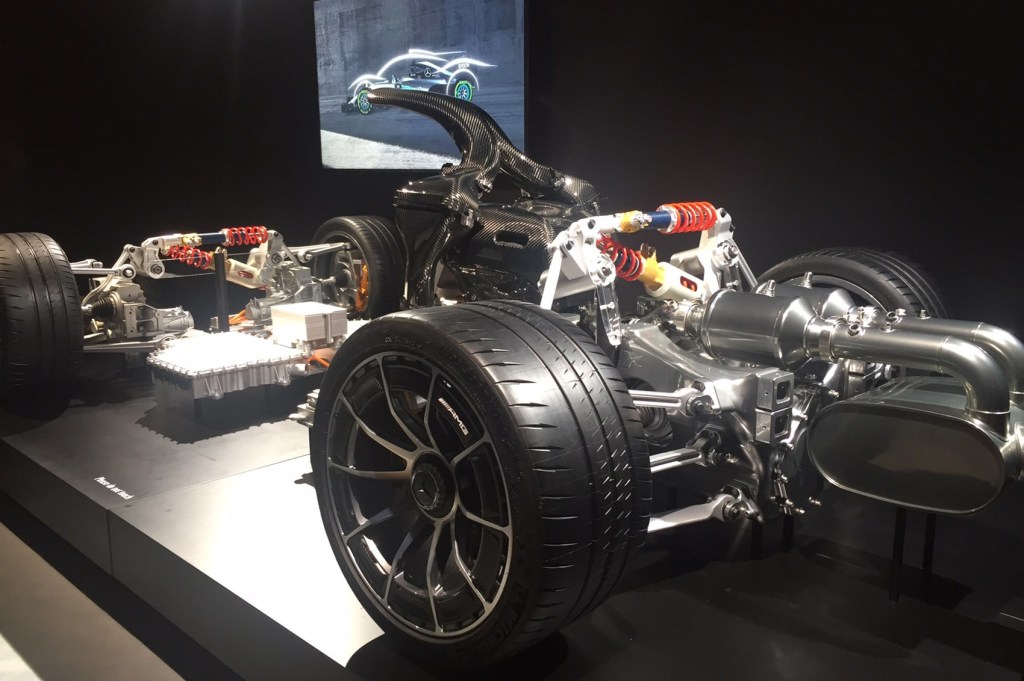 Mercedes AMG-One , come ha confermato Micheal Knoeller , responsabile globale del prodotto e delle vendite di AMG , durante il Salone di Los Angeles, monterà un motore moderno hybrid V6 di Formula 1 , è stato molto difficile da adattare alle esigenze di un’auto stradale. Knoeller ha spiegato : “Quando si lavora per poter omologare per la circolazione su strada la tecnologia della Formula 1 bisogna intraprendere un lungo viaggio con i clienti a fianco e affrontare diverse sfide. Una di queste è stata abbassare il regime del minimo dai 5.800 giri della F1 ai 1.200 richiesti per le omologa-zioni sulle emissioni”.