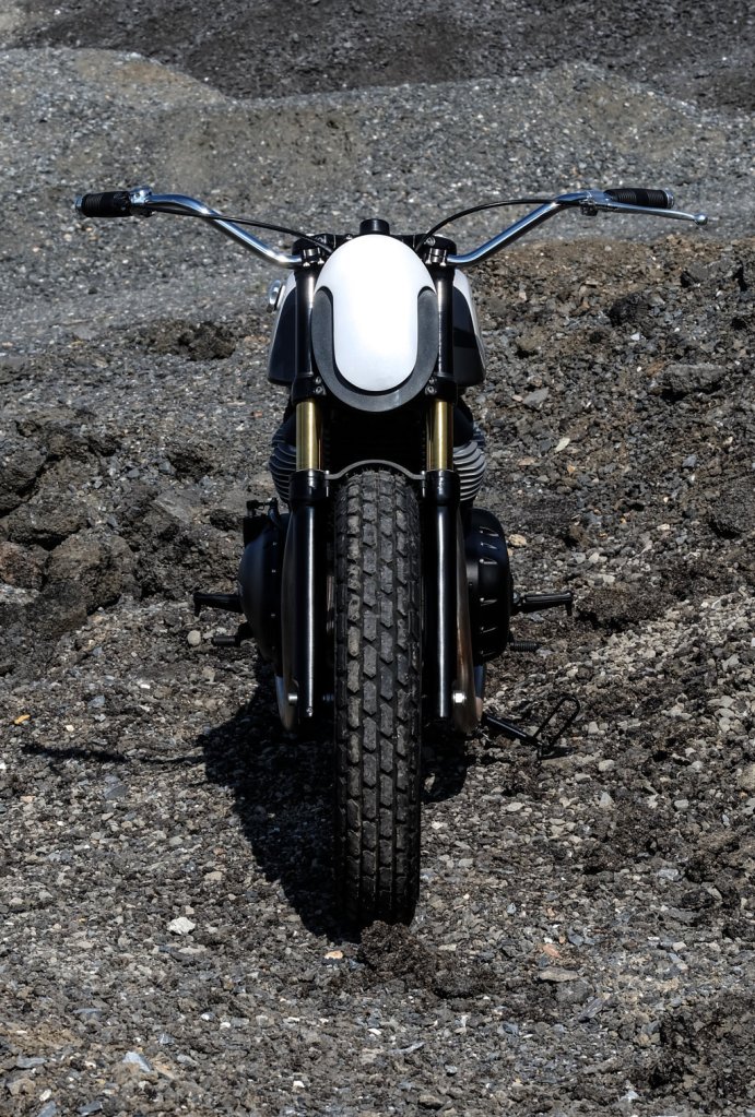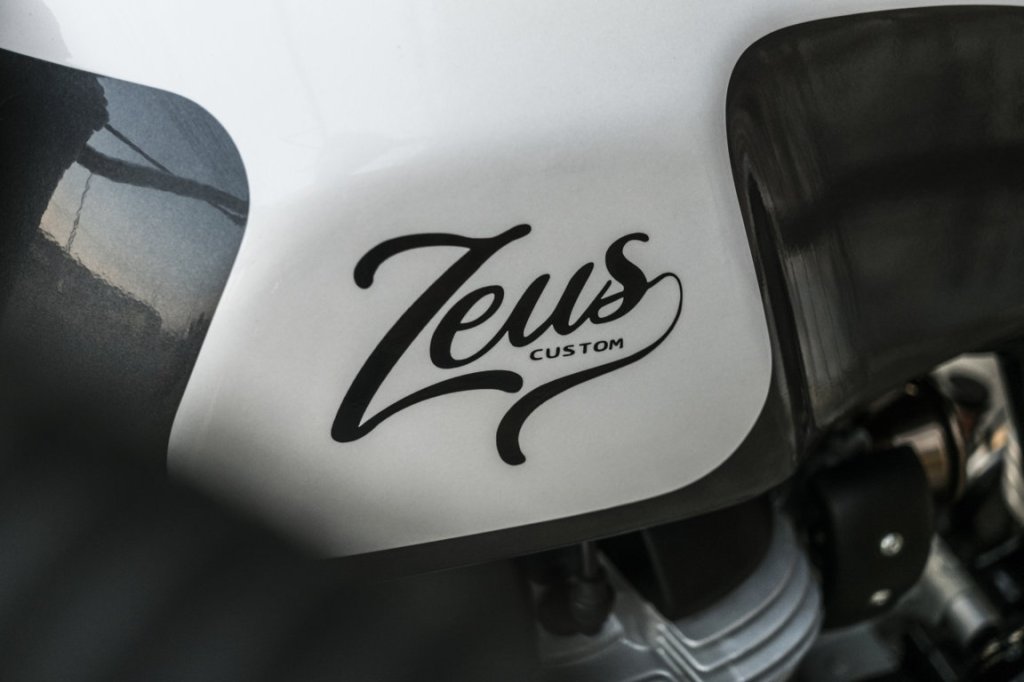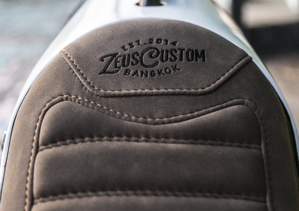 Pur seguendo lo stile Café Racer, Zeus Custom ha costruito una moto completamente nuova pur mantenendo lo spirito originale delle Royal Enfield. Zeus Custom vuole che la propria moto sia unica. Pertanto, ho scelto di progettare questa moto per avere uno stile unico, progettata per correre sia strada che su sterrato. Inoltre vuole che quando la Moose viene parcheggiata la gente si fermi ad ammirarla. Sottolineiamo lo stile artigianale della factory thailandese che ha progettato il telaio per far risaltare le linee curve dello scarico che sembra appeso al bicilindrico fronte marcia. Un look vintage con estremità di tubo in ottone, il retrotreno è totalmente ricostruito rispetto all’originale, munita di un mono-ammortizzatore in bella vista , ottimo l’effetto della zona anteriore leggermente ribassata rispetto all’originale , bellissimo il serbatoio e la sella rivestita in pelle color cioccolato cucita a mano, stupendo il logo è inciso con la firma dell’ufficio Zeus Custom. Le luci posteriori a LED sono personalizzabili situate sotto il codino che si raccorda perfettamente con la sella. La moto è curata in ogni più piccolo particolare. I comandi sono minimi ed eleganti al tempo stesso , il serbatoio elegantissimo è disponibile in colori eleganti, bianco perla, rifinito in grigio scuro.