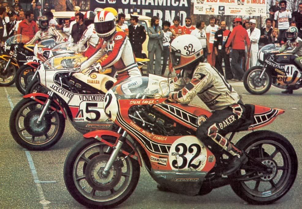 Steve Baker un piccolo uomo (meno di 160 cm) ma un grande pilota. Uno dei primi piloti USA arrivati in Europa a mettersi in mostra col ginocchio a terra , a causa della sua piccola statura nelle curve tendeva ad esporsi maggiormente dalla moto , ciò non gli impediva di governare le scorbutiche 500 e 750 2 tempi dell’epoca.