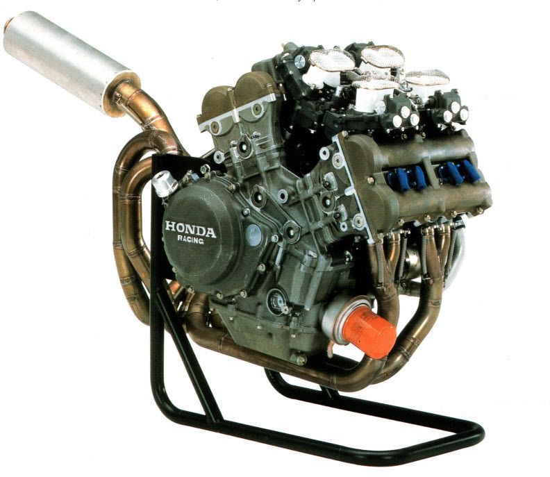 Alla Honda non si limitarono a concepire un motore così geniale, ma fecero anche un telaio monoscocca dello spessore di 1 millimetro, del peso di soli 5 kg, motore con funzione di irrigidimento del telaio, radiatori a sfioramento, cerchi da 16” anziché da 18″ come normale per l’epoca, perno del forcellone coassiale al pignone, forcella “upside down” con molle esterne, a vista. Era un concentrato di follia, immaginazione al potere, libertà, fantasia, capacità ed era frutto dell’ingegner Soichiro Honda (lo stesso nome del fondatore della casa…) coadiuvato dal futuro capo dell’Hrc Kanazawa.