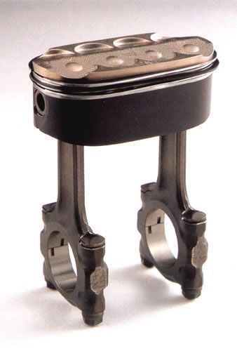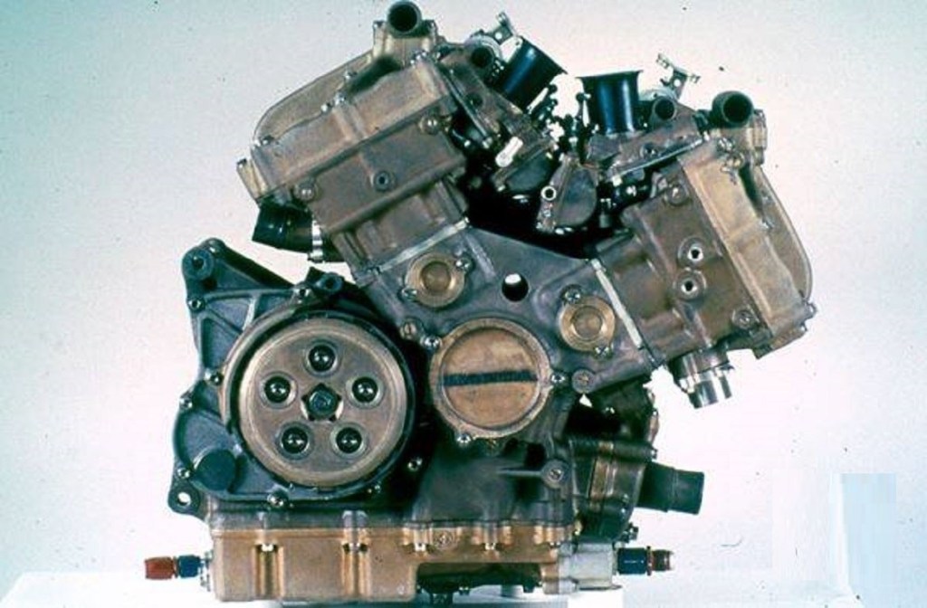 Ma la realizzazione di un 4 tempi poneva un problema: già dal 1970 la FIM aveva imposto il limite di 4 cilindri al frazionamento dei motori della classe 500. Tale limite era estremamente penalizzante per un motore a quattro tempi che, per ottenere la stessa potenza di una unità a due tempi, avrebbe dovuto teoricamente raggiungere un regime di rotazione doppio, risultato ottenibile solo con un motore plurifrazionato. Ecco quindi la trovata geniale, almeno in teoria: pistoni gemellati, così da emulare un 8 cilindri; da qui ai pistoni ovali il passo fu breve. Quattro pistoni ovali, otto valvole per cilindro, doppie bielle, doppia candela, carburatori a doppio corpo e doppio condotto di scarico. Il fine era raggiungere i 20.000 giri di rotazione per ottenere – raddoppiando il numero dei giri – la resa dei 2t.