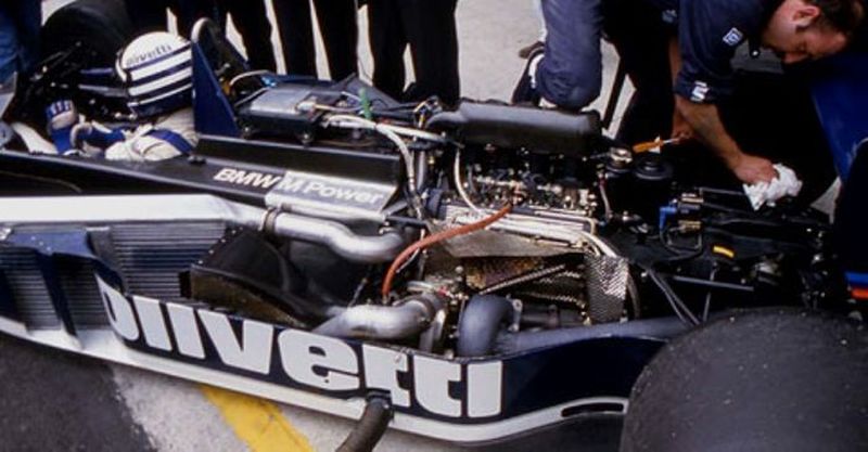 Anche il motore, campione del mondo solo tre anni prima, presentava grossi problemi. Mentre era stato modificato il basamento per permettere l’inclinazione di 72°, non erano state apportate grosse modifiche alla testa e ai cilindri. Inoltre, pur dotata per la prima volta di un sistema elettronico di accensione e di gestione della pressione di sovralimentazione del turbo, montava ancora una iniezione meccanica Bosch-Kugelfischer, che non era assolutamente in grado di competere nella gestione della combustione e dei consumi con le più moderne Bosch-Motronic usate dalla TAG-Porsche e dell’Hitachi della Honda. Arretratezza tecnica aggravata dalla riduzione della quantità di benzina disponibile che quell’anno era stata ridotta a 195 litri dai 220 del 1984-85. Questo faceva sì che il motore dovesse spesso girare “magro” con minori affidabilità. Inoltre si scoprì che nei curvoni a destra, probabilmente a causa dell’inclinazione, l’olio non tornava nel basamento a causa della forza centrifuga.
