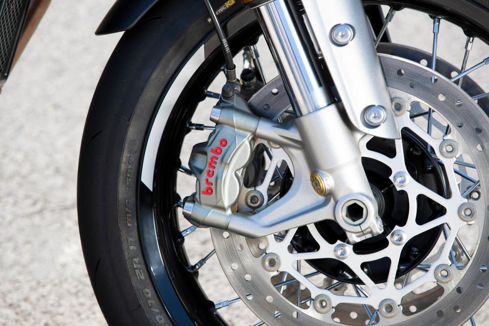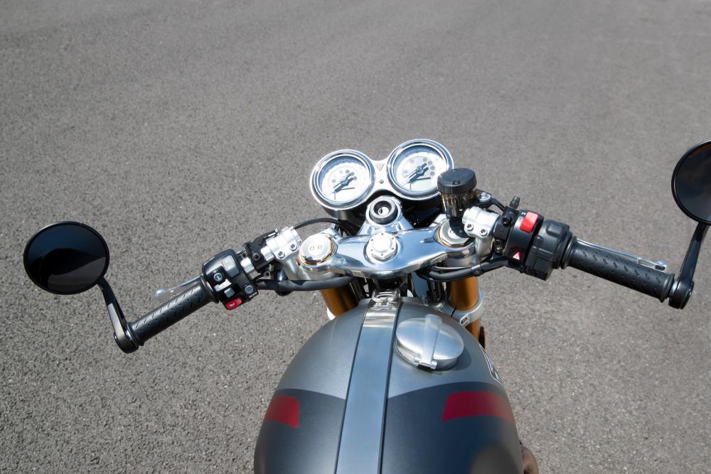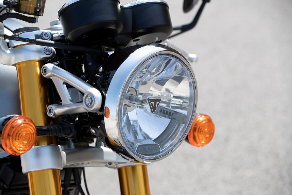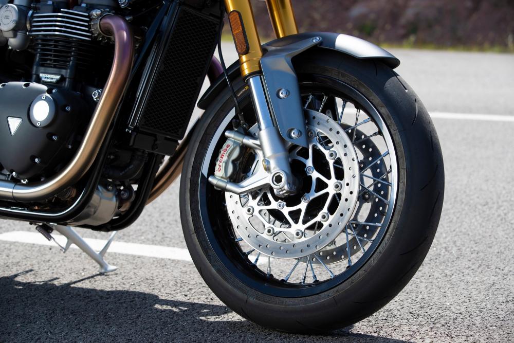 Come da manuale, motore, ciclistica ed elettronica si evolvono di pari passo: quando crescono le prestazioni, infatti, devono crescere anche gli strumenti per gestirle al meglio. Sulla nuova Thruxton RS cambiano i freni, un upgrade che prevede pinze Brembo monoblocco radiali M50 a quattro pistoncini, e i tre riding mode (Sport, Road e Rain) modificano ora la risposta di acceleratore, ABS e controllo di trazione. Le sospensioni – ammortizzatori Öhlins e forcella Showa big piston, entrambi pluri regolabili – erano già molto raffinate e sono state dunque confermate.