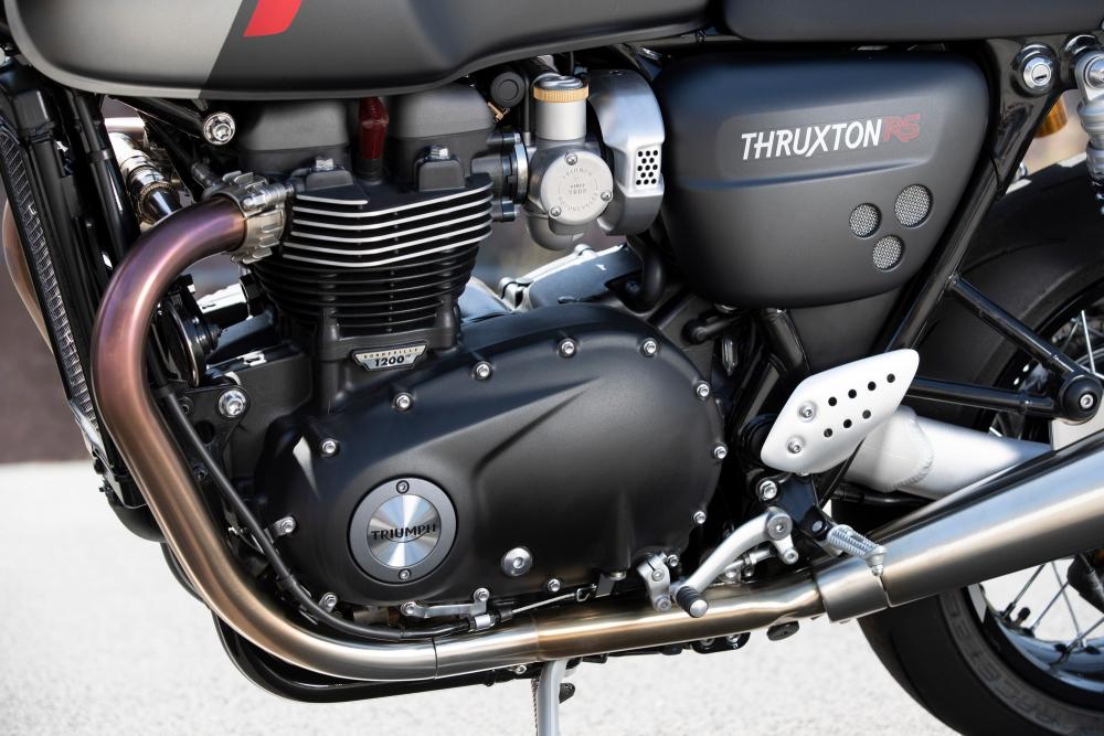 Come tradizione Triumph , oltre alla potenza a Hincley hanno lavorato molto sulla coppia, per dare ancora più carattere a una moto di per sé già ricca di personalità. La Thruxton RS è accreditata di 112 Nm a 4.250 giri, con il picco raggiunto 700 giri più in basso rispetto alla Thruxton R. Inoltre gli alleggerimenti e le modifiche hanno portato una riduzione dell’inerzia quantificata nel 20%, con il risultato di un’accelerazione ancora più pronta. Tutto ciò nonostante le restrizioni imposte dall’adeguamento agli standard di omologazione Euro 5.