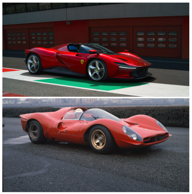 Alla 24 Ore di Daytona del 1967 la Ferrari piazza tre vetture sul podio della prima gara del Campionato Mondiale Sport Prototipi: la 330 P3/4, la 330 P4 e la 412P (descritto in un articolo dedicato a tale trionfo nella sezione “storie“) che sfilarono in parata alla bandiera a scacchi incarnavano alla perfezione lo spirito degli Sport Prototipi anni 60, epoca d’oro delle competizioni motoristiche a ruote coperte. La Ferrari Daytona SP3, seconda vettura che entra a far parte del segmento “Icona” a edizione limitata, rende omaggio a quegli Sport Prototipi Ferrari V12 a motore centrale-posteriore che fecero entrare il marchio nella leggenda degli sport motoristici.