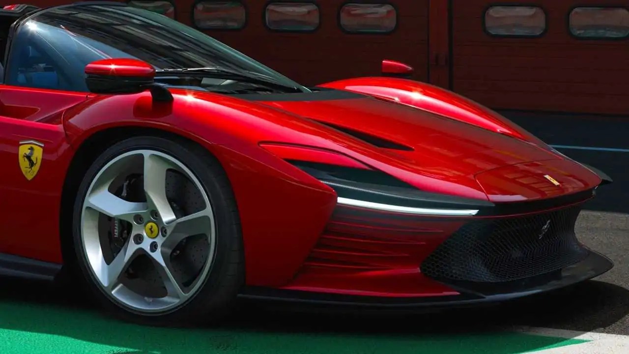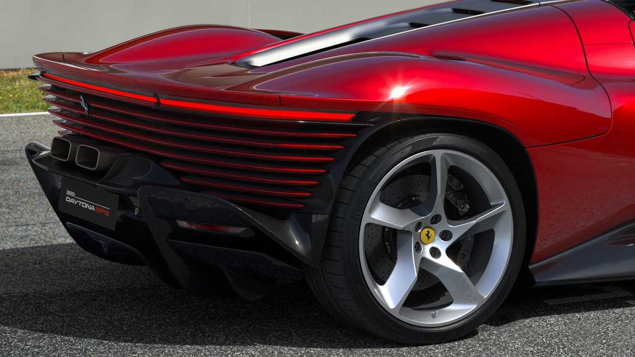 Tornando alla Daytona SP3, uno degli aspetti affascinanti è l’aerodinamica. L’obiettivo era quello di realizzare la vettura dalla più elevata efficienza (anche dal punto di vista dello smaltimento termico) senza ricorrere a elementi attivi. Fra le soluzioni più ingegnose c’è senza dubbio quella dei convogliatori d’aria integrati all’interno delle portiere, poiché le masse radianti sono state spostate verso il centro della vettura. Ancora, le piccole alette alle estremità del paraurti anteriore creano un soffiaggio all’interno dei passaruota per ridurre il drag, cui concorrono anche il disegno dei cerchi e il canale che parte dal vano ruota anteriore e arriva a quello posteriore. Dietro, l’intera superficie della carrozzeria è stata sfruttata al massimo in ogni direzione per garantire il più elevato carico verticale. Mentre il fondo prevede delle soluzioni che rimarcano, ancora una volta, quanto la Casa di Maranello sia avanti quando c’è da gestire l’aria: ci sono dei “”camini””, per esempio, dove i flussi scorrono verticalmente e mettono in comunicazione la parte superiore e inferiore del posteriore, la cui funzione è quella di spostare il bilanciamento aerodinamico verso l’anteriore e, al tempo stesso, produrre down-force creando aspirazione nel sottoscocca. Ancora, i terminali di scarico posizionati in alto hanno permesso di sviluppare un diffusore di dimensioni molto importanti che presenta, nella parte centrale, una sorta di doppio estrattore.