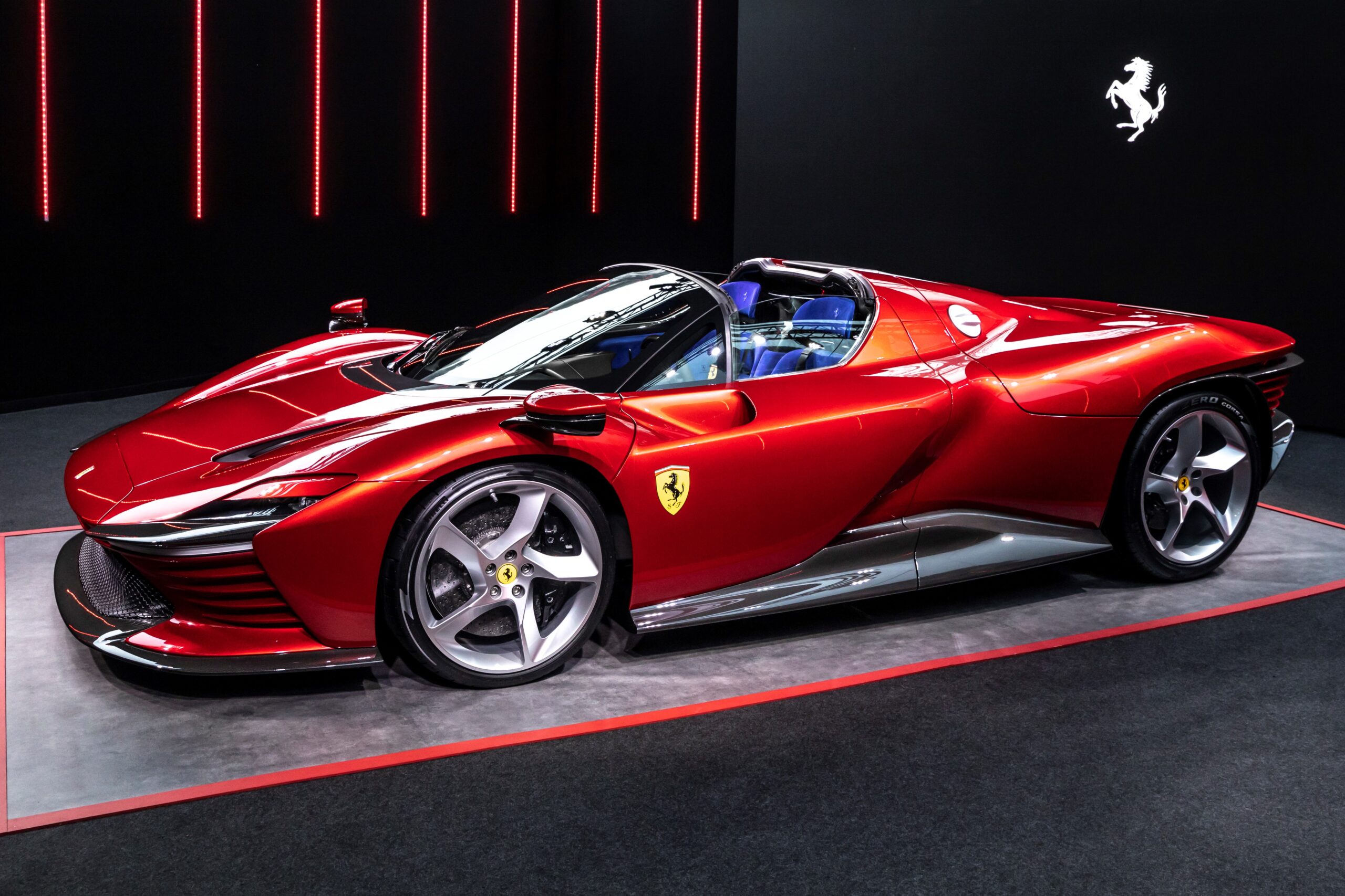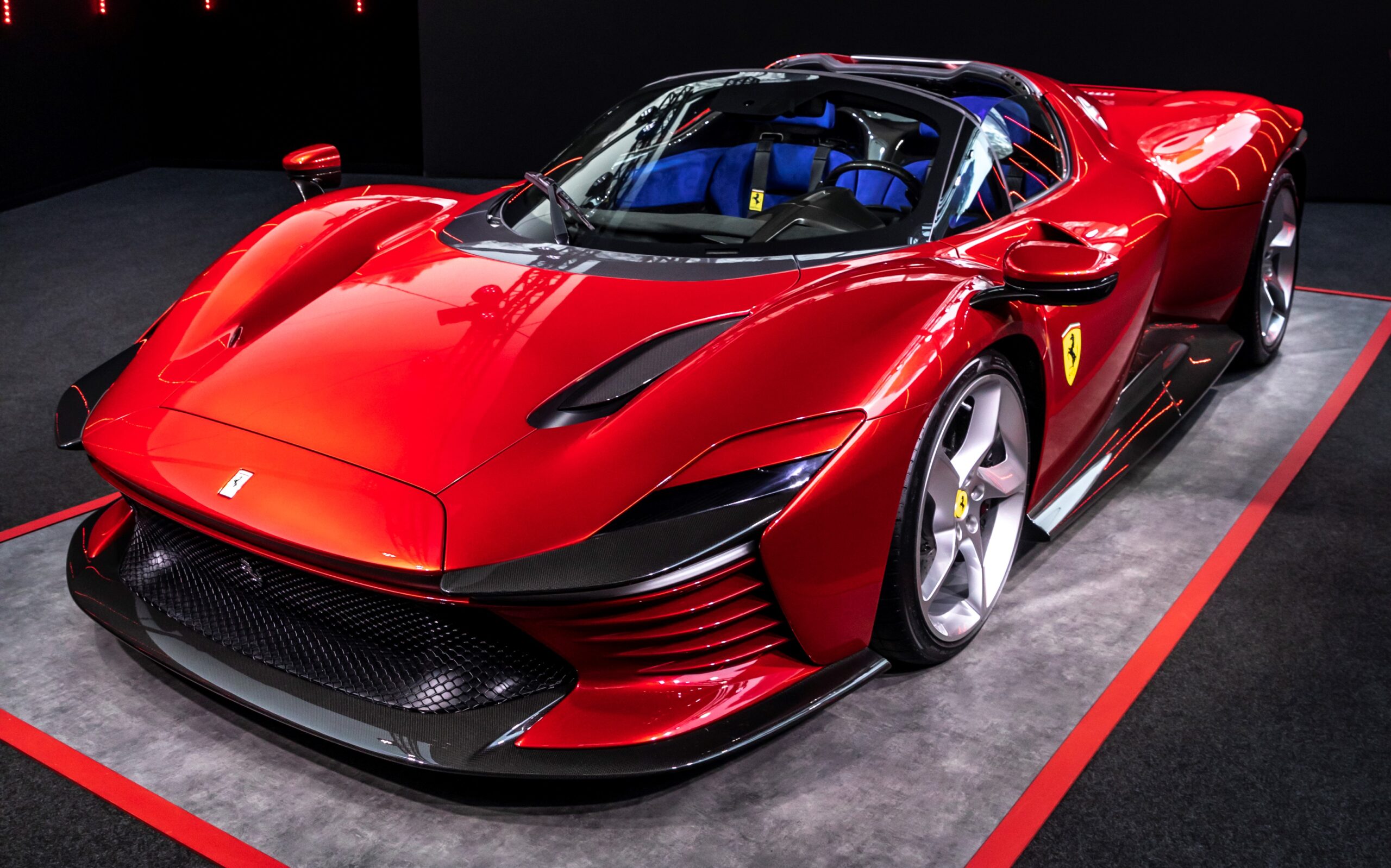 È proprio a queste iconiche vetture Sport che la Daytona SP3 (il numero celebra la tripletta, appunto) vuole rendere omaggio. E lo fa attraverso volumetrie sinuose e fluide, parafanghi sensuali su cui poggiano gli specchi retrovisori, un parabrezza avvolgente che pare una goccia. Dietro, poi, la parte più originale: l’intero volume sfaccettato, formato da linee orizzontali sovrapposte, come l’originale 250 P5 Berlinetta Speciale, una “concept” del 1968 realizzata dalla Pininfarina, su disegno di Leonardo Fioravanti, che avrebbe dovuto rimpiazzare nelle corse la 330 P4. I cambi di regolamento sportivo lo impedirono, dunque “concept” rimase, peraltro evolutasi in un’Alfa Romeo (33 Prototipo); ma quella è un’altra storia.