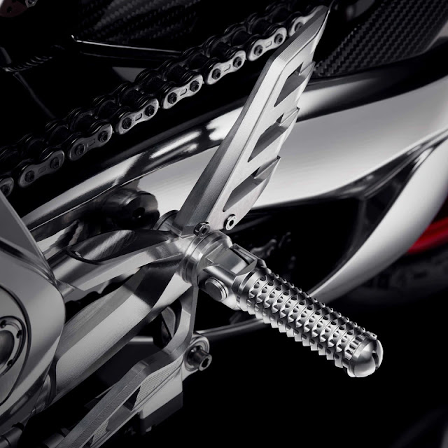 Svelata i primi di novembre dopo mesi di annunci , la nuova V4 SV è la sportiva carenata con cui Norton, tornata in pista grazie a TVS, intende riconquistare una buona fetta di fan e appassionati. Trattandosi di un concept non siamo ancora a conoscenza di tutte le informazioni del caso, ma è comunque possibile avanzare qualche ipotesi. Facile intuire che il motore della Norton V4 CR possa ricalcare quello della V4 SV. Parliamo di un V4 di 72° capace di ben 187 CV a 12.500 giri e 125 Nm di coppia massima a 10.000 giri, prestazioni superiori a quelle del tre cilindri della Triumph Speed Triple RS per intenderci e anche a quelle della Aprilia Tuono 1100 Factory. Nel caso della supersportiva di Casa Norton troviamo anche tre mappe motore e l’impiego della piattaforma inerziale. La questione diventa ancora più interessante se andiamo ad analizzare la ciclistica che, sempre sulla V4 SV, è di assoluto rilievo. Il telaio in lega di alluminio e il monobraccio sono abbinati a una forcella Öhlins NIX30 e da un monoammortizzatore, sempre Öhlins, TTXGP, entrambi a regolazione meccanica.