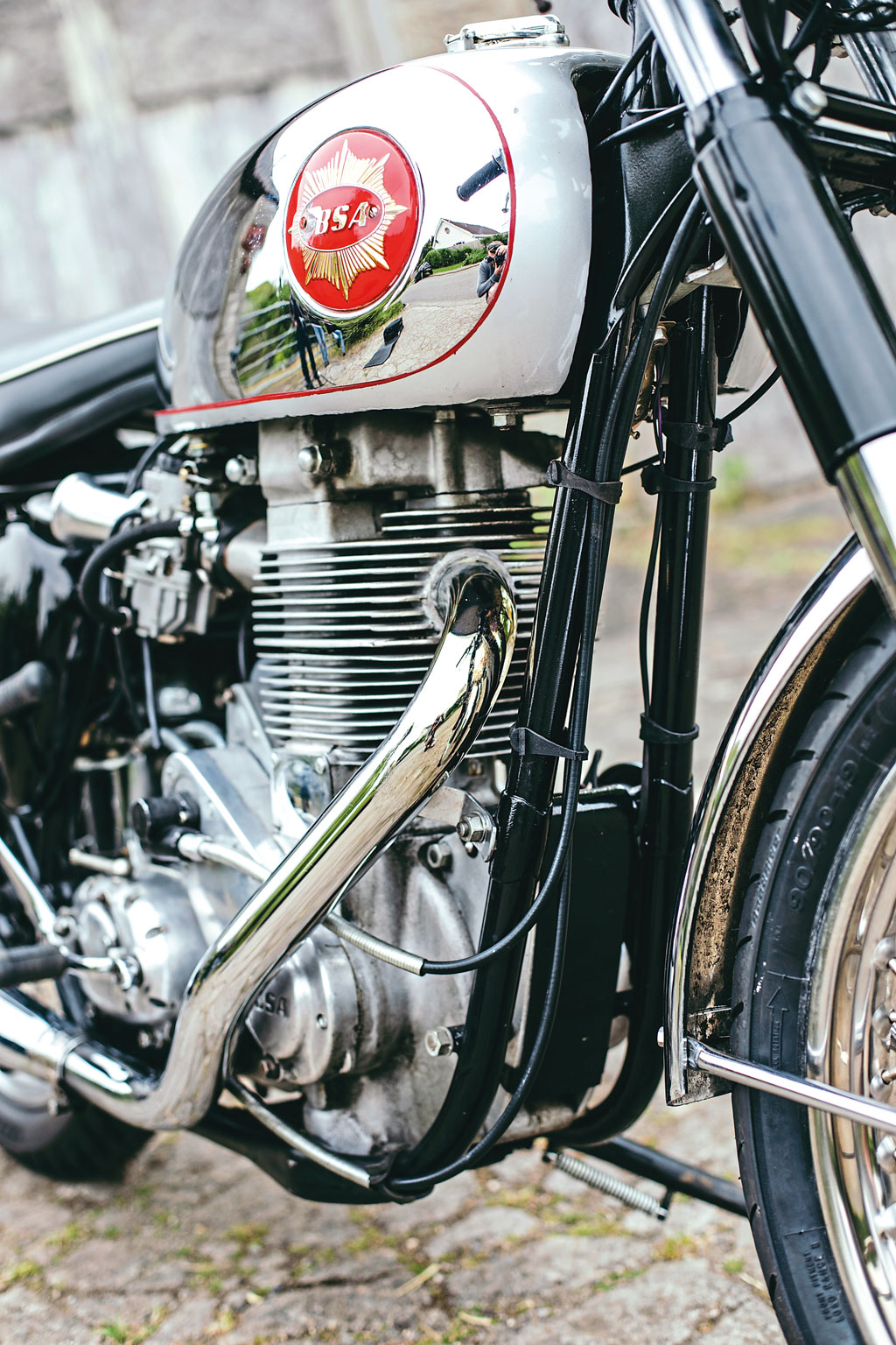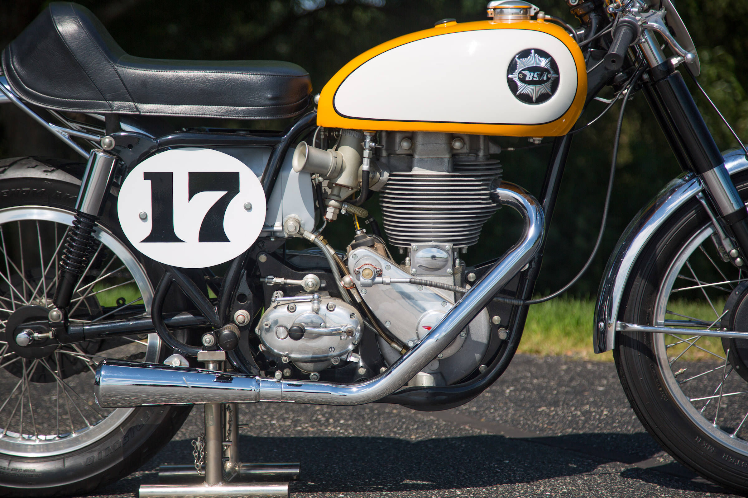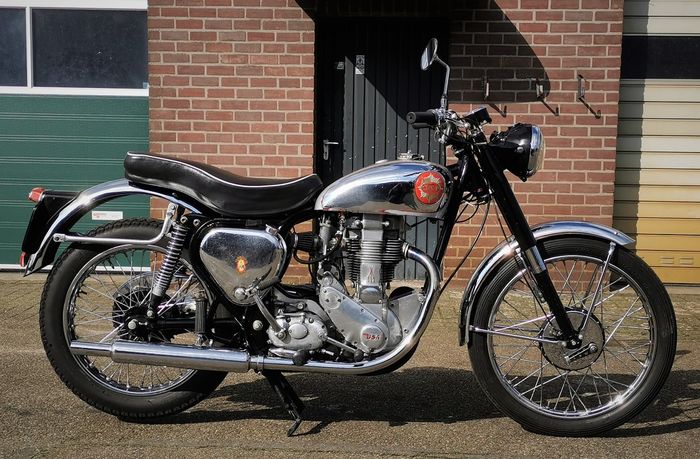Dopo la guerra, nel 1945-46, BSA aveva introdotto il motore in acciaio 348 cc il B31 e il successivo 499 cc B33. In preparazione per la stagione dei modelli 1949 e per attirare acquirenti sportivi, presentò il motore di 348 cc lo ZB32 con alesaggio e corsa di 71 mm × 88 mm (2,8 × 3,5 pollici) completamente in lega leggera, tali propulsori furono mostrati per la prima volta al Salone Motociclistico di Earls Court al fine del 1948, con un elenco molto ampio di componenti opzionali. A differenza del motore M24 prebellico, la testata del cilindro era una solida fusione di un unico pezzo, con i bilancieri incorporati nell’unità. Il nuovissimo telaio a molla aveva la cosiddetta sospensione a pistoni, a metà strada tra i primi tipi di forcellone rigidi e successivi. Queste utilizzavano molle non smorzate montate su alberi e pezzi forgiati su entrambi i lati del perno della ruota posteriore e sebbene fossero un miglioramento rispetto a un telaio rigido per il ciclista su strada medio, erano considerate troppo pesanti dai motociclisti e dai corridori , oltre che accusate di diminuire la maneggevolezza. Una volta ordinata, la moto veniva assemblata a mano e il motore testato al banco e non rilasciato a meno che non fosse stata raggiunta una potenza di uscita accettabile, che era di circa 25 Cv (19 kW), a seconda delle specifiche. I cilindri in lega erano 20 libbre (9,1 kg) più leggeri di quelli precedenti in ghisa. Tali modifiche ebbero quasi immediatamente successo nelle competizioni, vincendo la classe 350 del Manx Grand Prix Clubman dal 1949 e rimasero tali fino al 1956, quando la classe fu interrotta. I modelli da corsa utilizzavano inoltre l’affermato carburatore Amal TT.