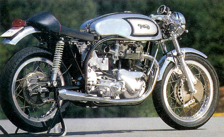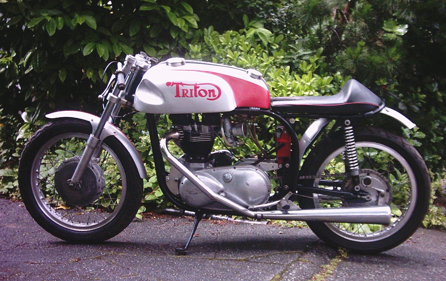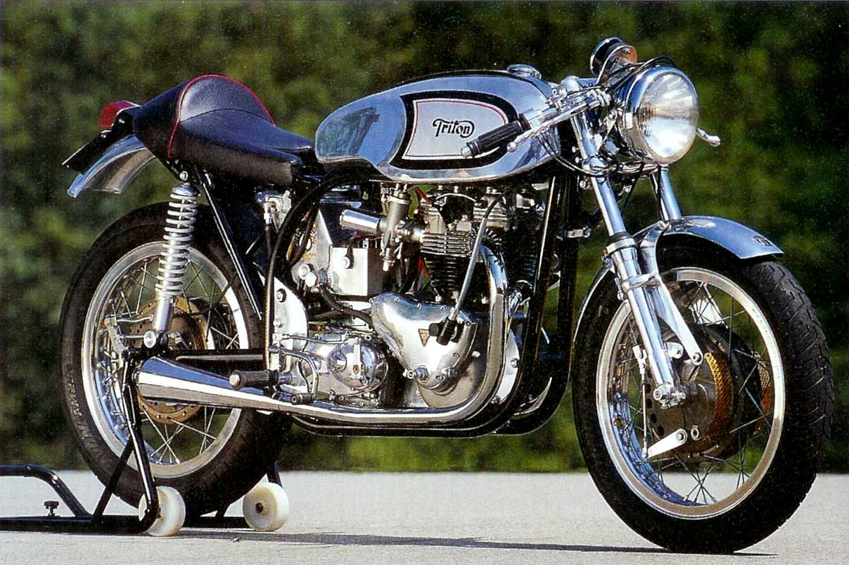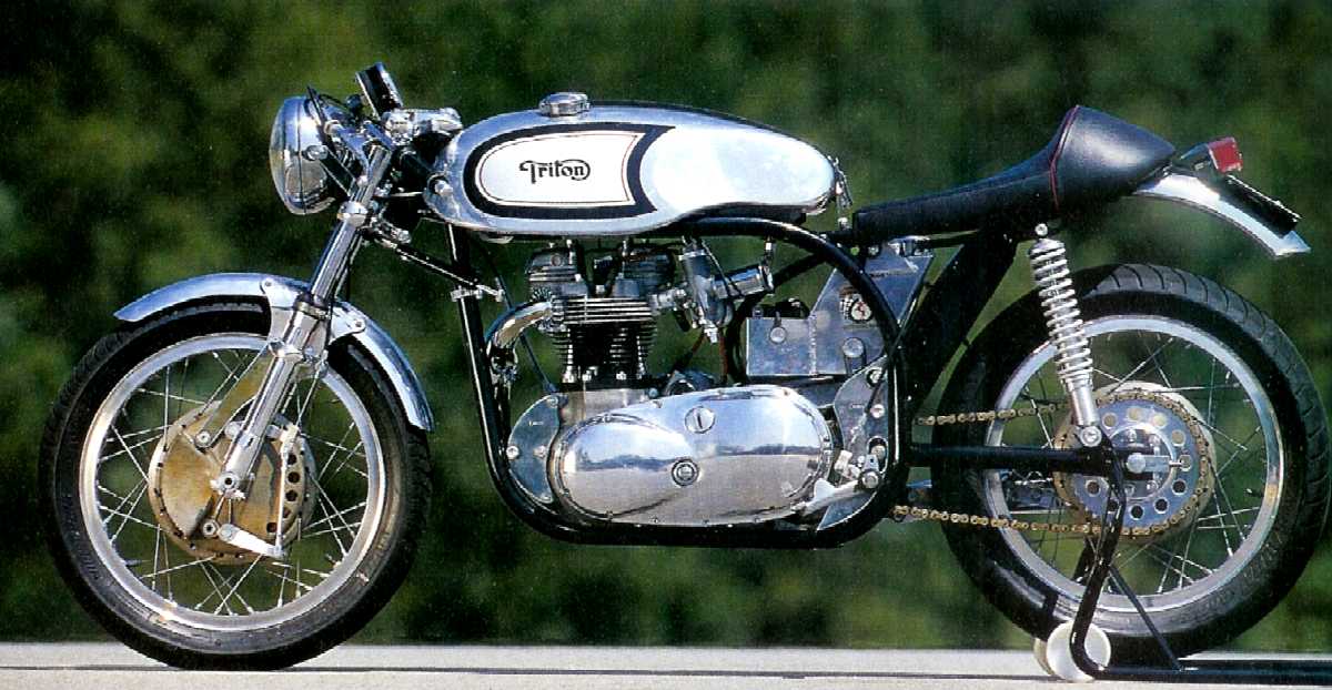 All’inizio degli anni cinquanta in Inghilterra non erano disponibili moto sportive di serie come le race-replica di oggi. I rockers, che avevano il desiderio di cavalcare moto simili a quelle che gareggiavano sui circuiti Inglesi, avevano però la possibilità di comprare i pezzi per elaborare le loro moto presso i vari preparatori: Paul Dunstall per la Norton, Eddie Dow per la BSA, i fratelli Rickman con i loro telai Metisse e tanti altri. Così nacquero le Cafe Racer, le prime special sportive dell’era moderna. Strutture ridotte all’osso, telai derivati dai GP e motori preparati: questo il loro biglietto da visita. Triton è stato il marchio più rappresentativo di questo fenomeno.