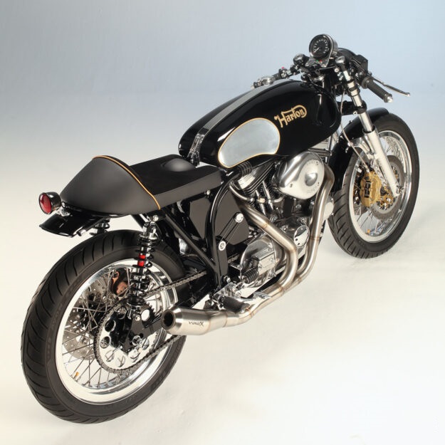 Questa volta, Stile Italiano ha scelto un iconico progetto di café racer dal nome Harton. Il nome deriva dalla combinazione dei nomi Harley e Norton, l’Harton è alimentato dal bicilindrico a V di una Harley-Davidson Sportster 883 montato all’interno di un telaio Norton.