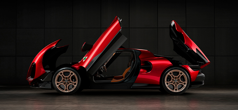 La nuova 33 Stradale segna il ritorno dell’Alfa Romeo nell’olimpo delle supercar più esclusive. È disponibile con un V6 biturbo 3.0 da oltre 620 CV oppure con motore elettrico da oltre 750 CV.