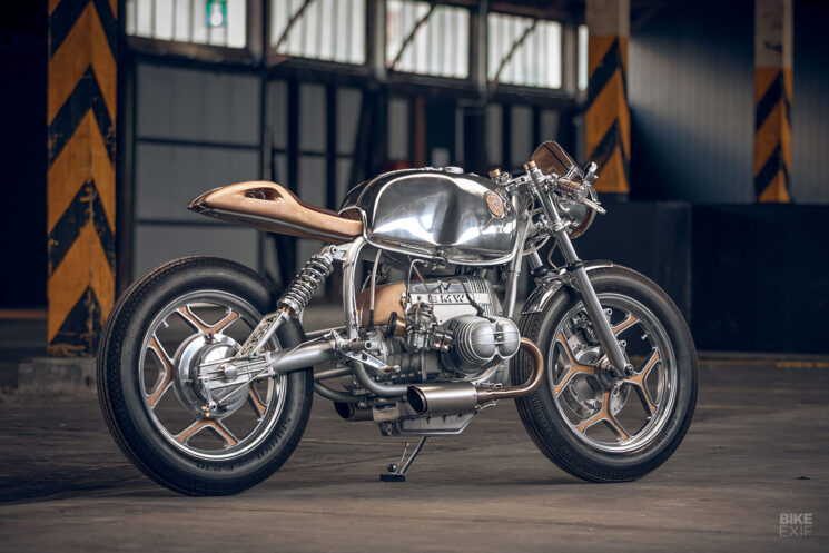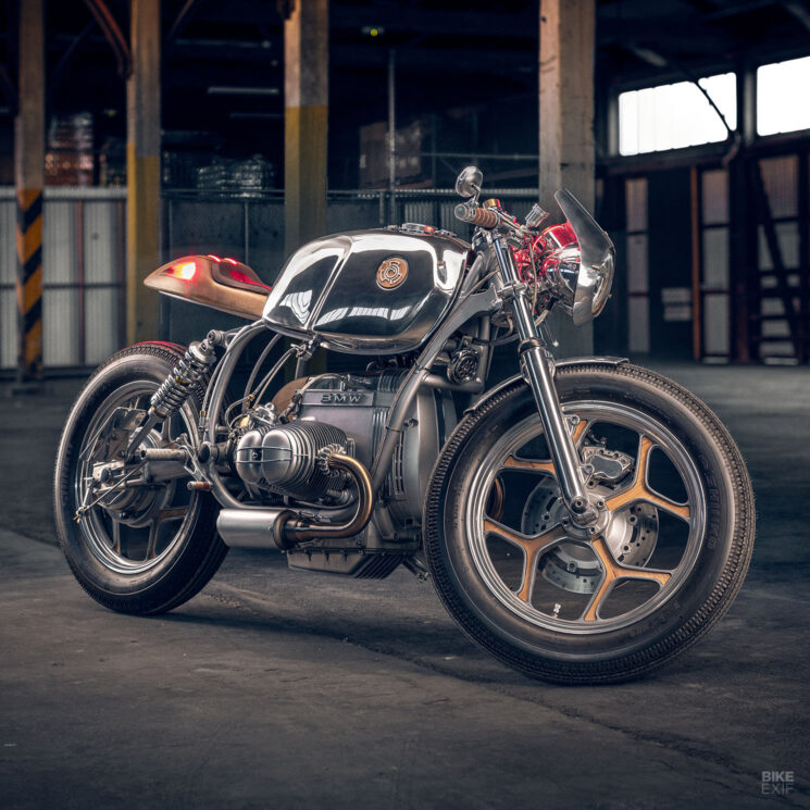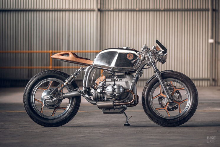 Andrew è un fanatico delle cose artigianali che utilizzano materiali grezzi e robusti. Ama anche utilizzare il legname locale dove vive, come la quercia della Tasmania che adorna questa BMW R65.