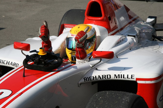 E’ una battaglia durissima in cui rientra anche Piquet Junior . Alla fine Hamilton ha la meglio, si prende la terza posizione e lascia la compagnia, all’ultimo giro va a prendersi anche il secondo posto e il giro veloce. La vittoria va all’austriaco Andreas Zuber ma quasi nessuno ci fa caso. Gli occhi sono tutti per l’impresa di Lewis , ormai tutti , direttori sportivi, ingegneri, meccanici e piloti sono sul muretto e al rientro ai box dopo la gara è un tripudio di congratulazioni , con tutto il paddock a complimentarsi col giovane pilota inglese compreso l’allora sette volte campione del mondo Michael Schumacher pronosticando un futuro da campione del mondo.
