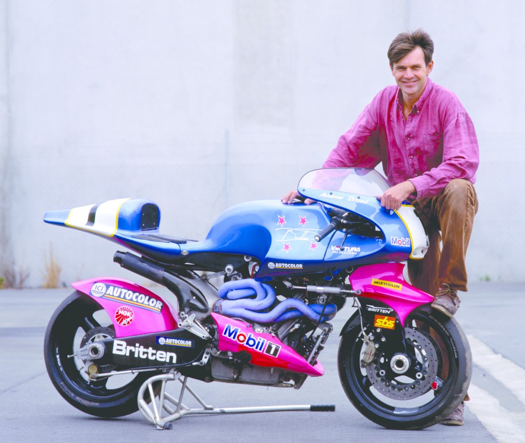 Nel motociclismo di uomini che hanno scritto delle belle pagine di storia ce ne sono pochi. John Britten è uno di questi. Un grande personaggio, un genio, un sognatore, divenuto famoso per aver realizzato il suo sogno, ovvero costruire dal nulla una motocicletta dalle doti straordinarie, una formidabile bicilindrica da competizione tecnologicamente paragonabile ad una MotoGP attuale (in anticipo di 30 anni) in grado di competere con i colossi delle due ruote nelle maggiori competizioni mondiali, e di batterli.