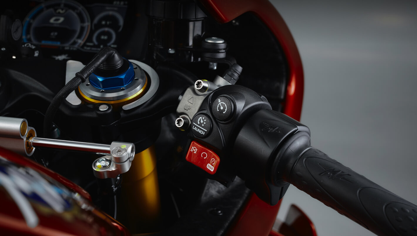 Quattro i Riding Mode, di cui tre preimpostati (Rain, Sport, Race) e uno personalizzabile dal motociclista (Custom). In questa modalità al pilota è consentito settare a proprio piacimento i parametri relativi a: sensibilità dell’acceleratore, coppia motore, freno motore, risposta motore, limitatore e settaggio sospensioni elettroniche.