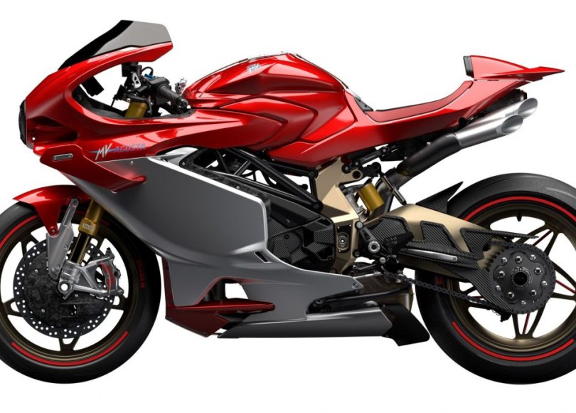 L’unità a quattro cilindri in linea da 998 cc risulta l’evoluzione più recente del cuore propulsivo presente sulla potente MV Agusta Brutale 1000 RR. Si evidenzia anche la modifica dell’impianto di scarico, notando i quattro terminali nella zona posteriore. La potenza raggiunge un picco di 208 cavalli a 13.000 giri/minuto, che aumentano a 212 cavalli con racing kit, oltre a 116,5 Nm di coppia a 11.000 giri/minuto.