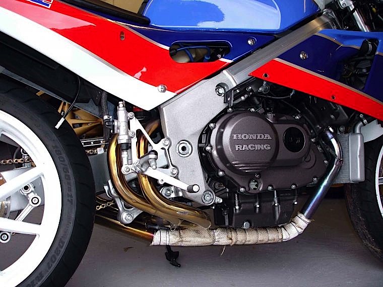 La VFR 750 R RC 30 e la RVF condividevano diverse scelte progettuali. Per primo il motore, un V4 con inclinazione tra le bancate di 90° con le medesime misure vitali di alesaggio per corsa: 70×48,6 mm. Quello della RC 30 era un 4 cilindri con distribuzione a doppio asse a camme in testa con cascata d’ingranaggi, quattro valvole per cilindro, bielle in titanio, carter umido e cambio a 6 rapporti. Il responso del banco era di 112 cavalli all’albero a 11.000 giri.
