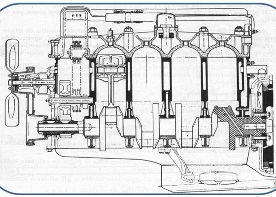 Vettura Lancia Appia I serie Motore. Tipo 4 cilindri a V stretto – Alesaggio 68 mm – Corsa 75 mm.